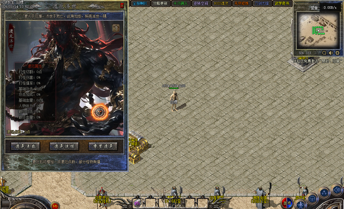 三次更新内容:突破性大更新,新增5.6大陆 以及2章隐藏剧情大陆 内容是问剑3的两倍之多。 本次更新装备以及物品件数:689件 仅展示部分内容 新增5条七彩天命,6条金光天命 洗练七彩时概率会出现金光天命 新增称号:18个 新增武器:S-SR-SSR-U 四个等级 约20把武器 新增衣服:S-SR-SSR-U 四个等级 约20件衣服 新增首饰:S-SR-SSR-U-UR-XR 四个等级 约60件 新增神器:S6 S7 S8 共 12件 开放首饰盒12个装备位置 分为: 圣器四个位置:新增圣器 50余件装备 四象装备四个位置:新增四象装备20余件 四象套装2套 宝物2个位置:新增10件,8件打怪宝物,2件攻沙套装 五行装备1个位置:新增10件 五行装备相生相克 副职业1个位置:新增3件装备 注意:选择副职装备后无法专职 可搭配5大陆复古神器 同时佩戴可激发强力属性 开放首饰盒6个位置,问剑3是五个位置 新增 封妖葫 五大陆可晋升为除妖神葫 开放上古神器6个位置 问剑3 是五个位置 渡厄界 掉落最终深海渡厄剑甲 渡厄套装 以及更为优秀的特殊装备 新增独家系统:命运齿轮 装备开放新位置(齿轮会在人物头上转动) 齿轮数量:13枚 分为2阶段 命运正转和逆命反转 获得:命运齿轮·天选后 可逆转天命 额外获得隐藏天命 无需抽取 直选获得 新增独家系统:怀旧勋章 怀旧1.76 圣域玩法 可吞噬其它勋章获得高额属性 勋章数量11枚 每个圣域BOSS页面 可开启不同的打怪BUFF 新增独家渡厄济世功能 可洗练人物基础属性 渡厄石由红色怪物以上爆出